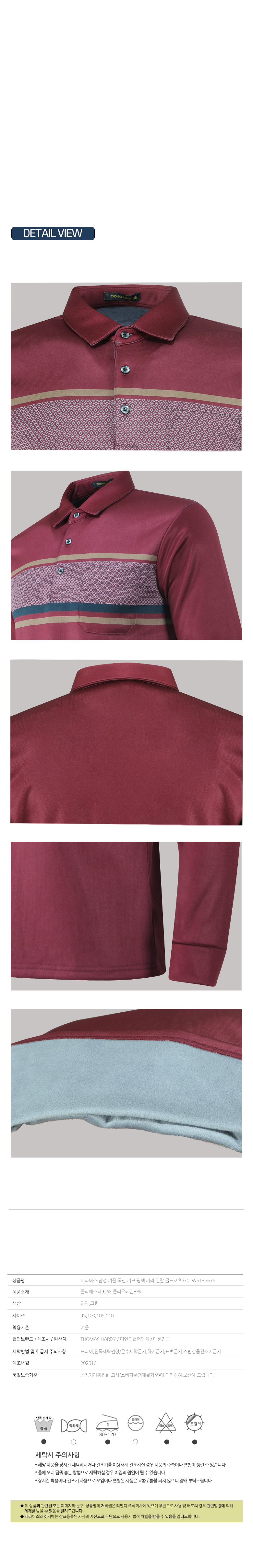 | 세탁방법 및 취급시 주의사항 | 드라이,단독세탁권장/온수세탁금지,화기금지,표백금지,스판상품건조기금지 |