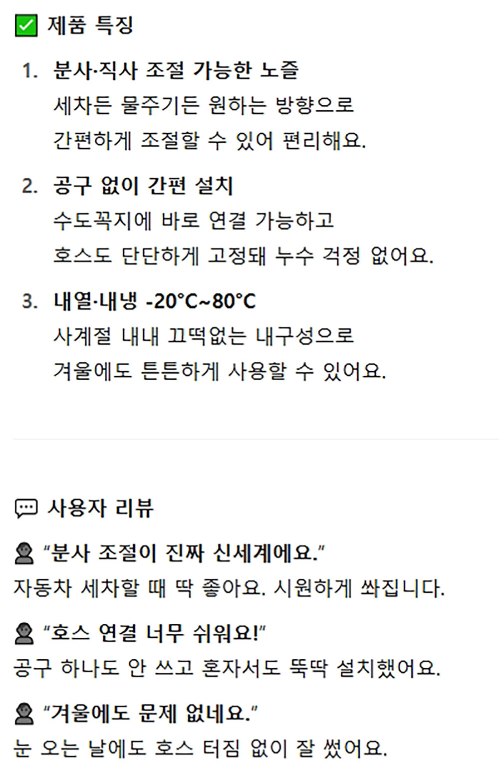 직분사 조절이 간편한 분사기 다용도 세차호스 15M