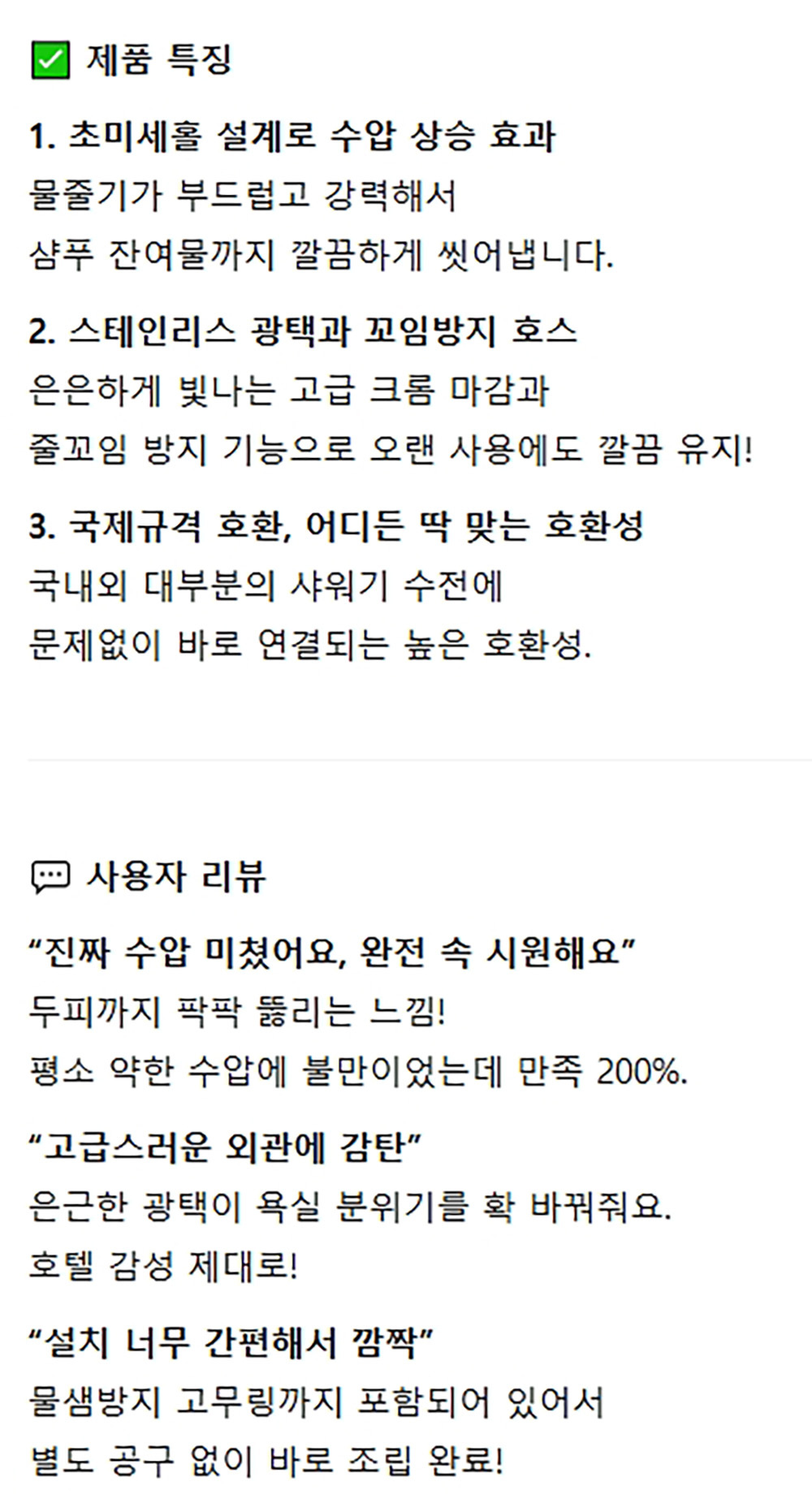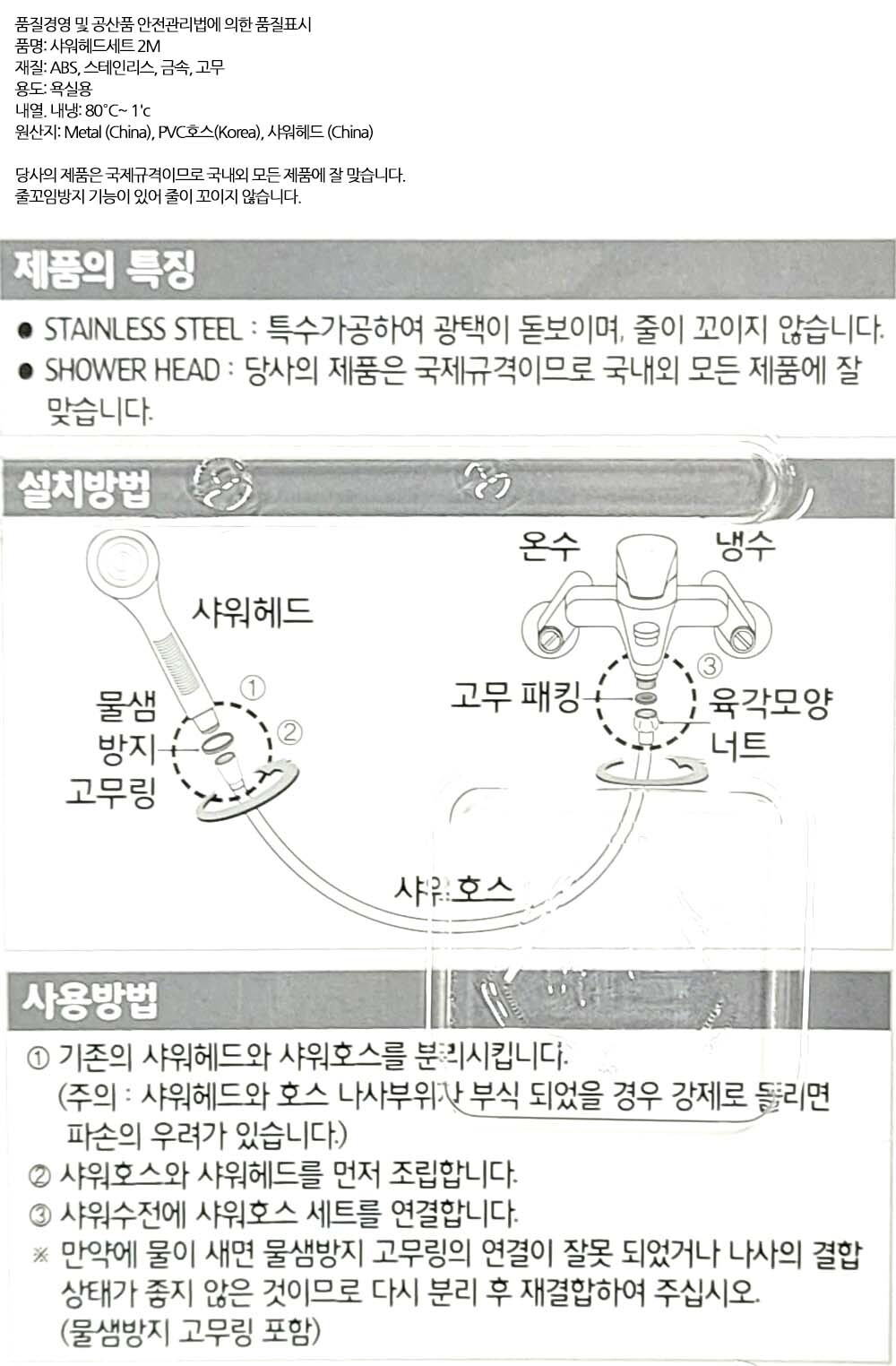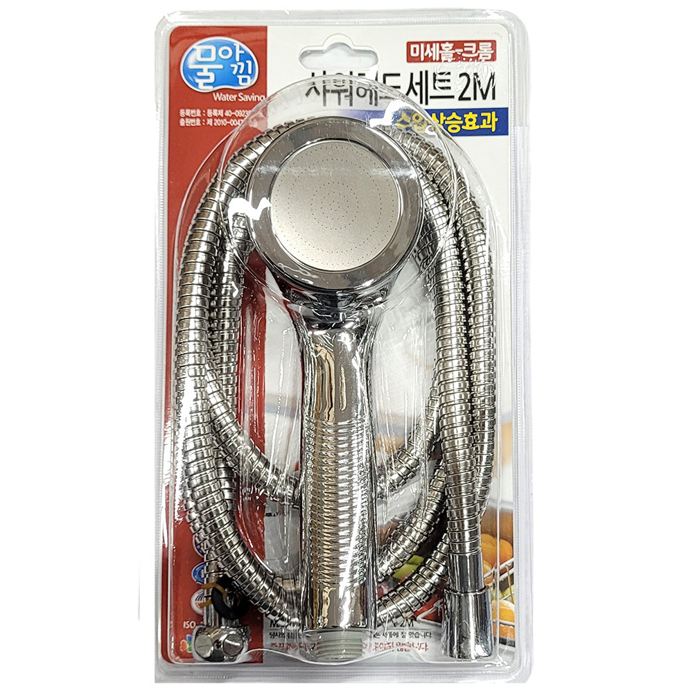 수압상승효과 미세홀 크롬 샤워헤드 호스세트 2M