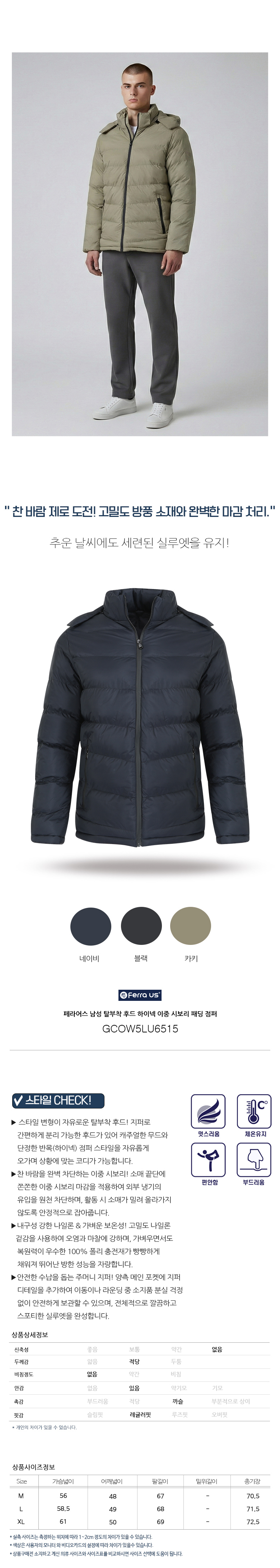 | 제품소재 | SHELL : 100% NYLON LINING : 100% POLYESTER PADDING : 100% POLYESTER |