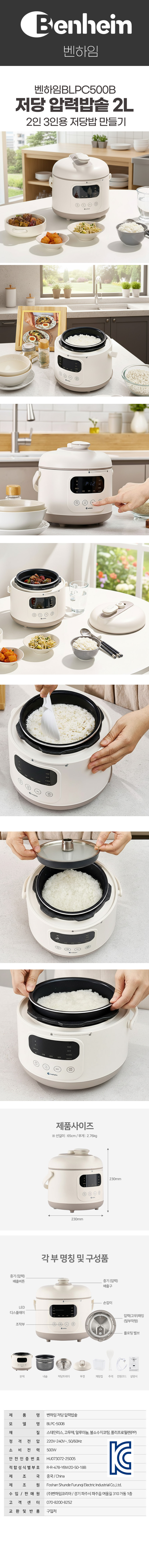 | 모델명 | 벤하임BLPC500B 저당 압력밥솥 2L 2인 3인용 저당밥 만들기 |