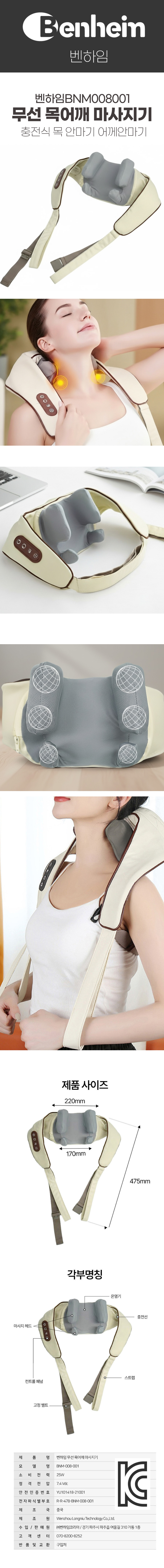 | 품명 | 벤하임BNM008001 무선 목어깨 마사지기 충전식 목 안마기 |