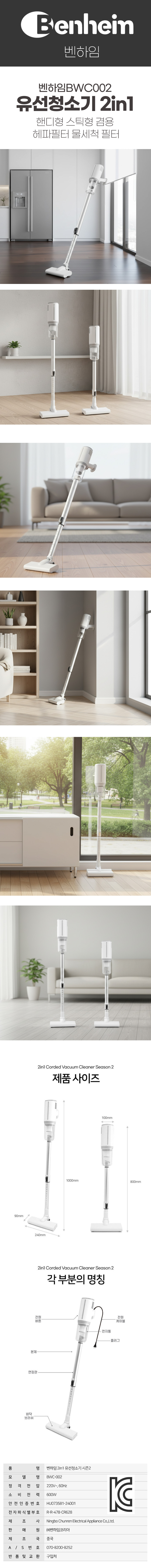 | 모델명 | 벤하임BWC002 유선청소기 2in1 핸디형 스틱형 겸용 헤파필터 |