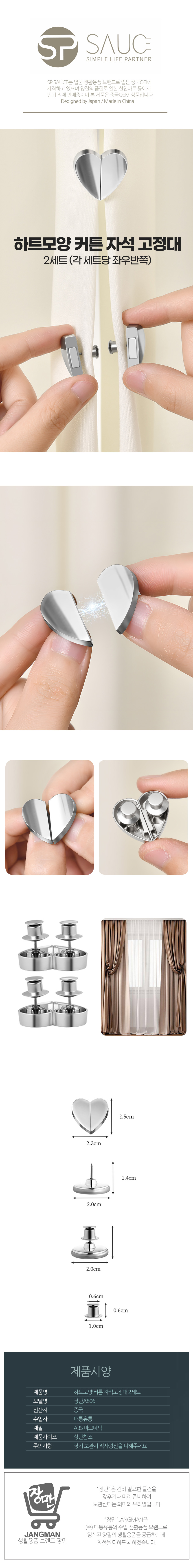 | 모델명 | 장만A806 하트모양 커튼 자석 고정대 2세트 고정핀 |