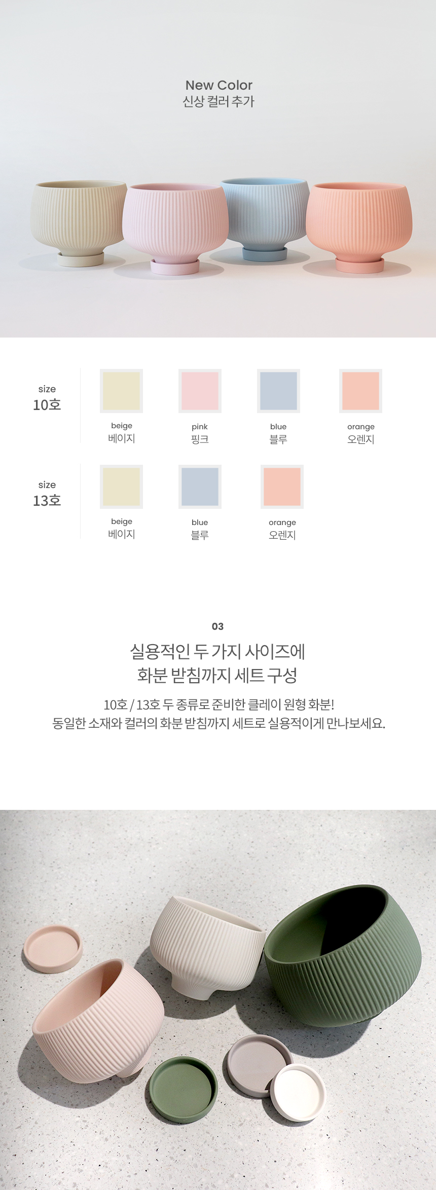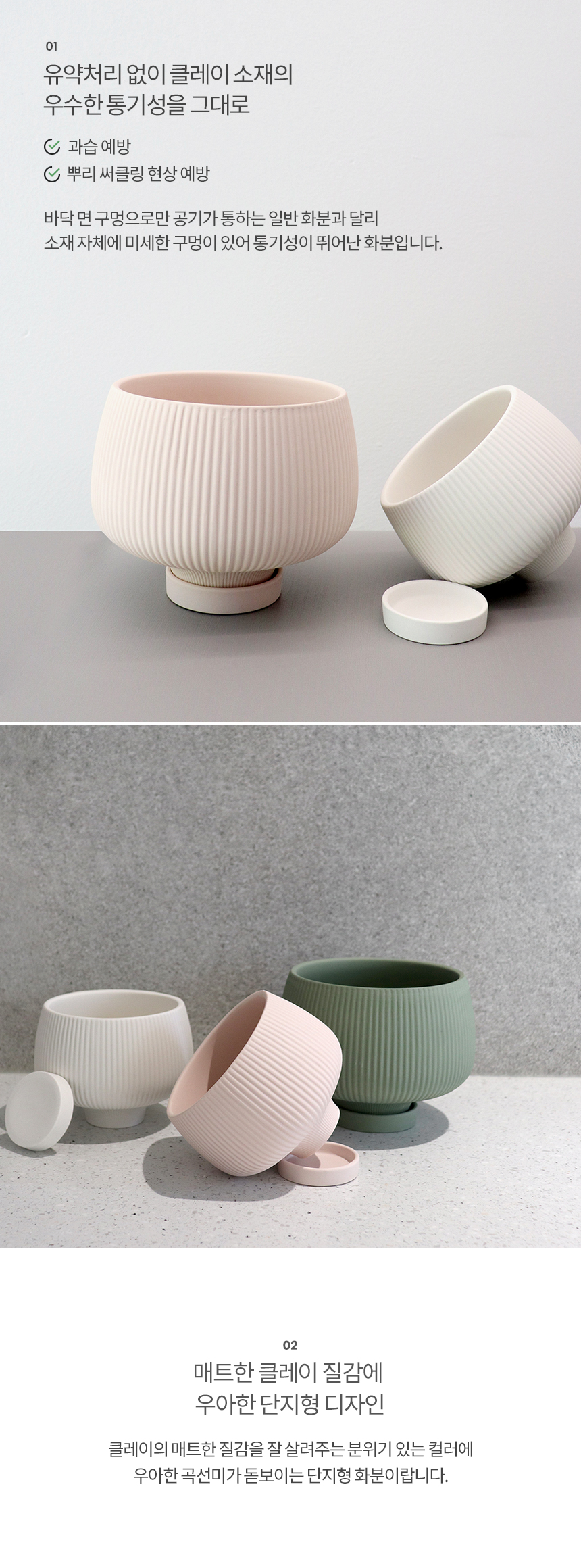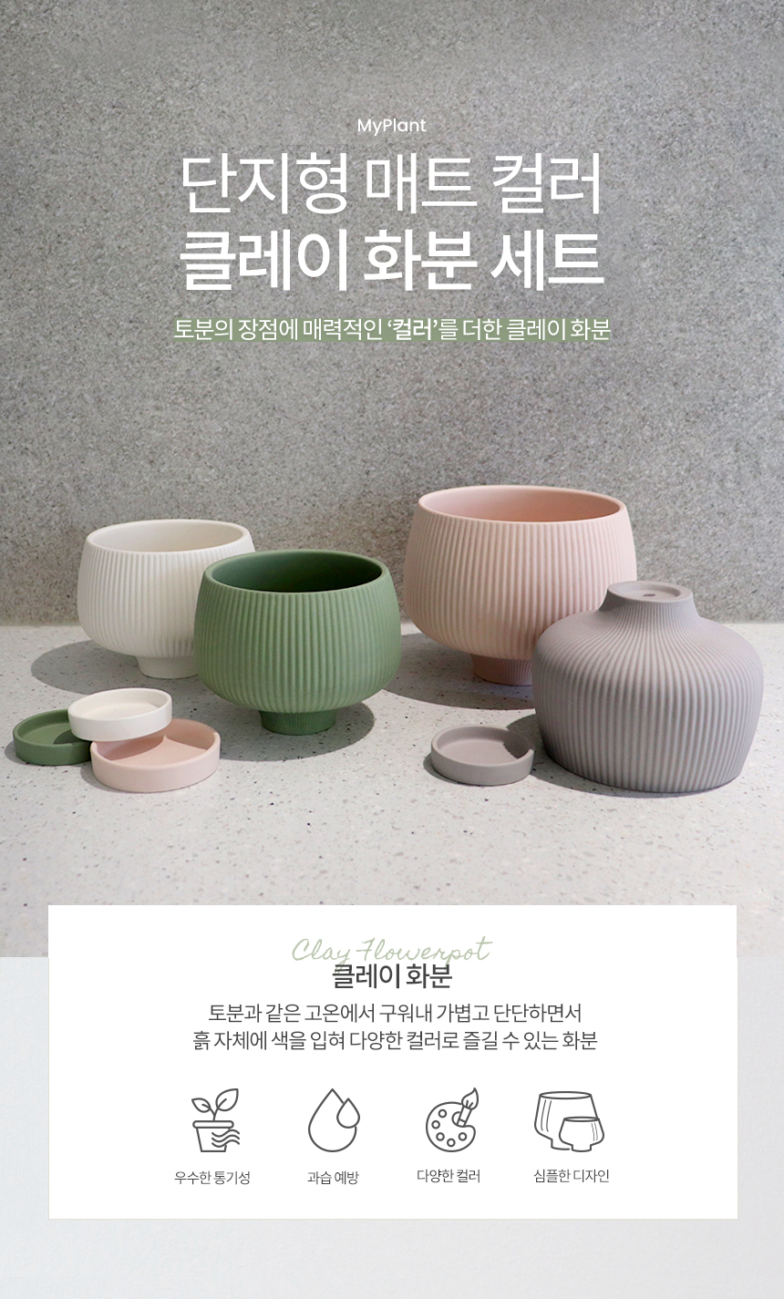 단지형 매트 컬러 클레이화분 (받침세트)