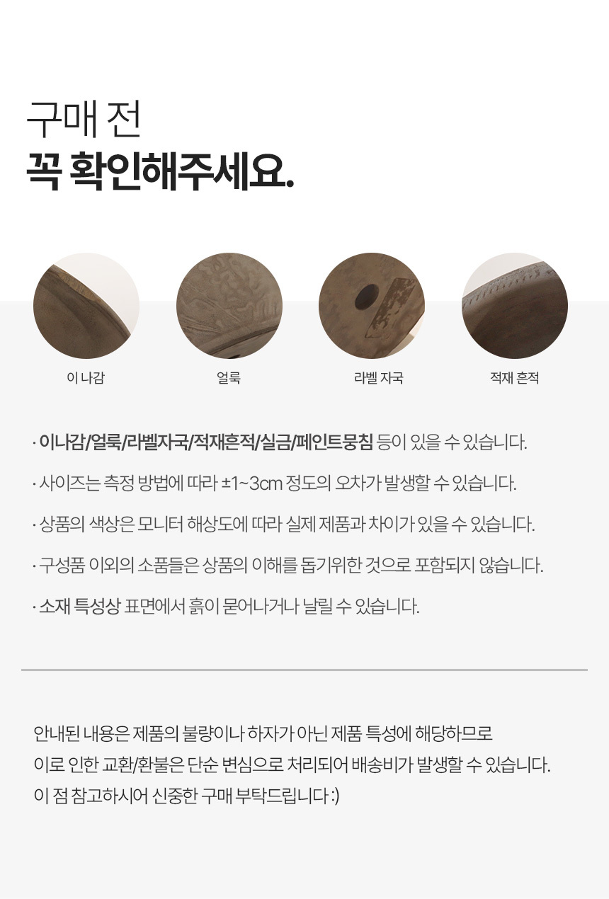 ※ 오배송, 불량, 파손 이외의 사유 및 색상 차이에 의한 반품/교환은 변심에 해당됩니다.