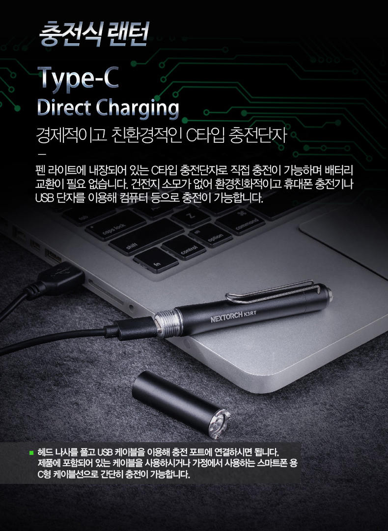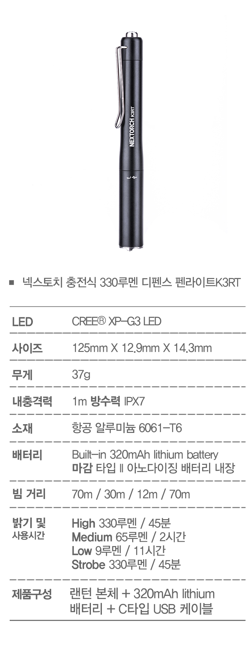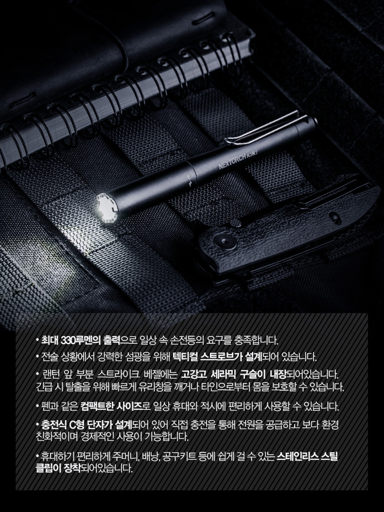 넥스토치 충전식 330루멘 디펜스 펜라이트 K3RT