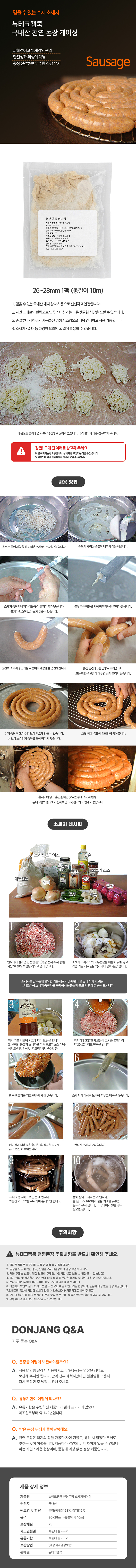 | 모델명 | 뉴테크캠쿡 천연돈장 소세지케이싱 26~28mm 1팩 (총길이 10m) |