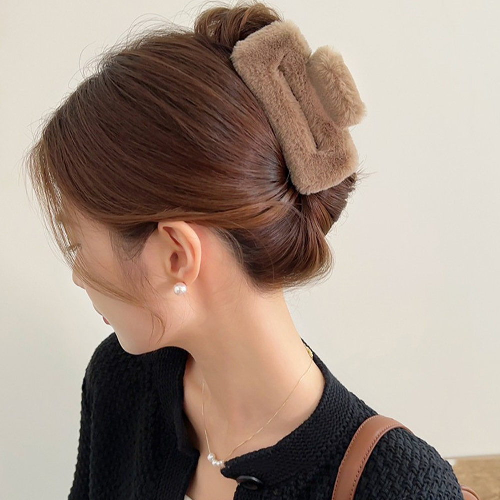 스퀘어 퍼 집게핀 올림머리 반묶음 헤어 털집게핀