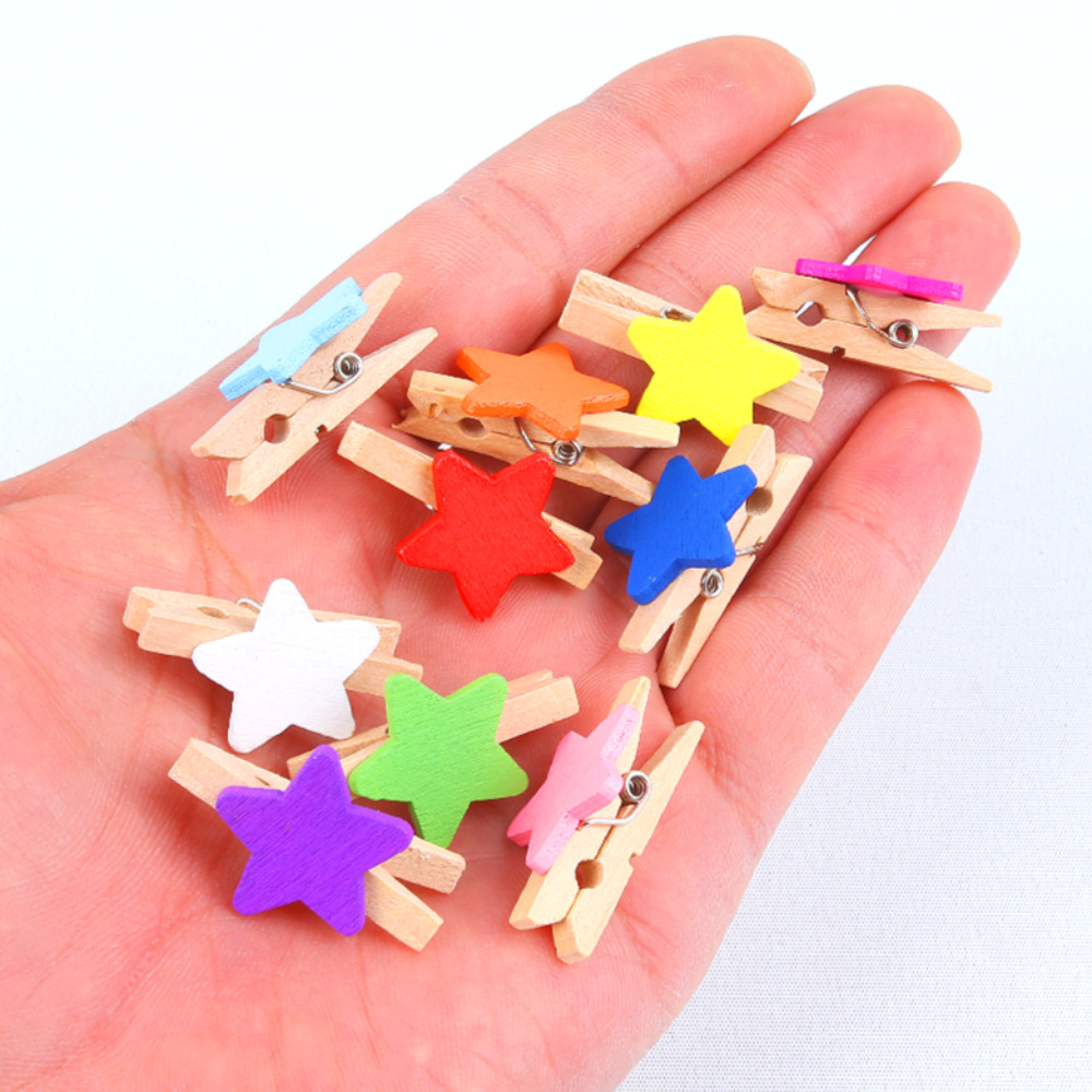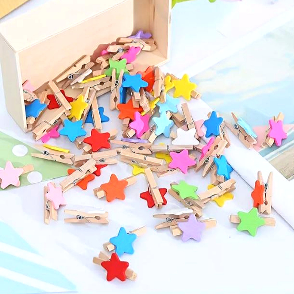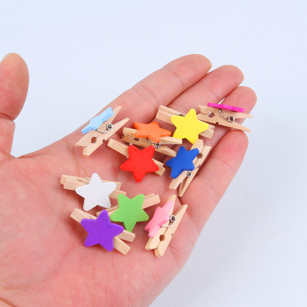 컬러 별 메모 폴라로이드 사진 나무 집게 10p