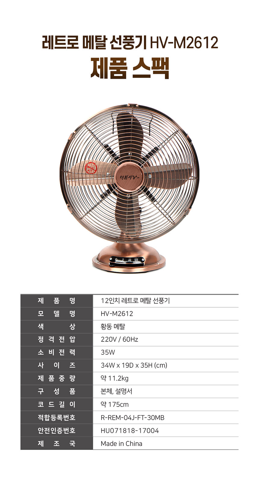 | 품명 | 메탈 황동 12인치 선풍기 |