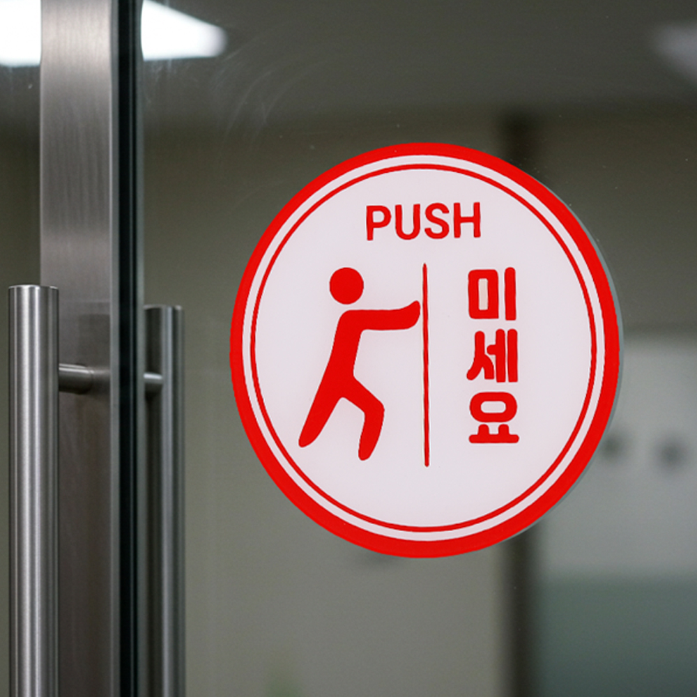 미세요 당기세요 아크릴 표지판 원형 8cm