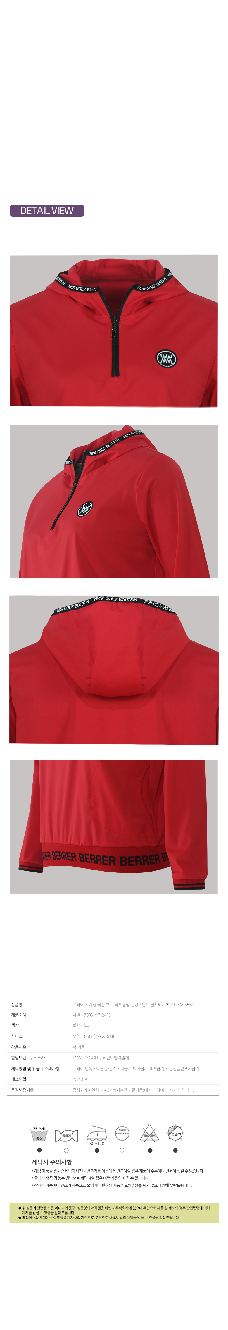 세탁방법 및 취급시 주의사항 | 드라이,단독세탁권장/온수세탁금지,화기금지,표백금지,스판상품건조기금지 |