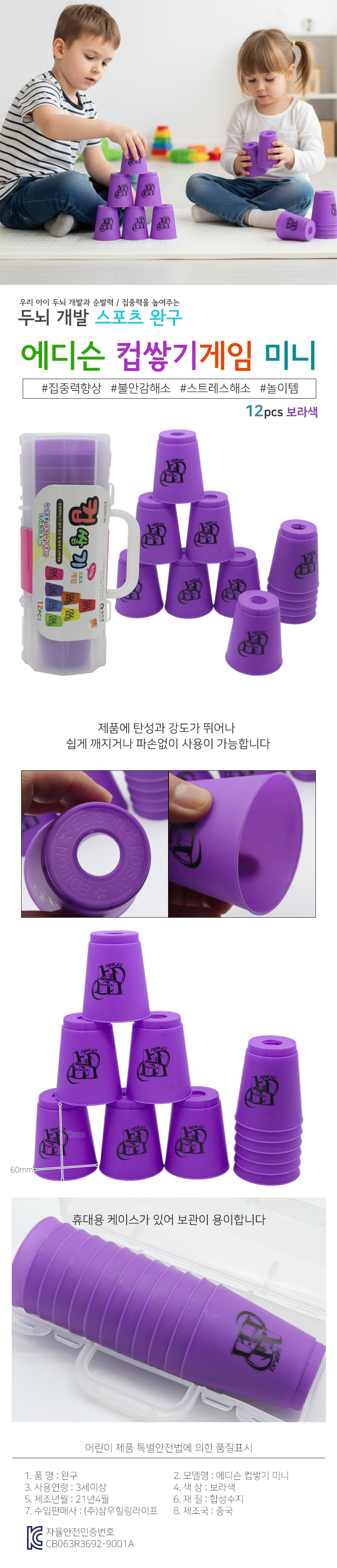 에디슨 컵쌓기 미니 보라 게임 어린이 교구