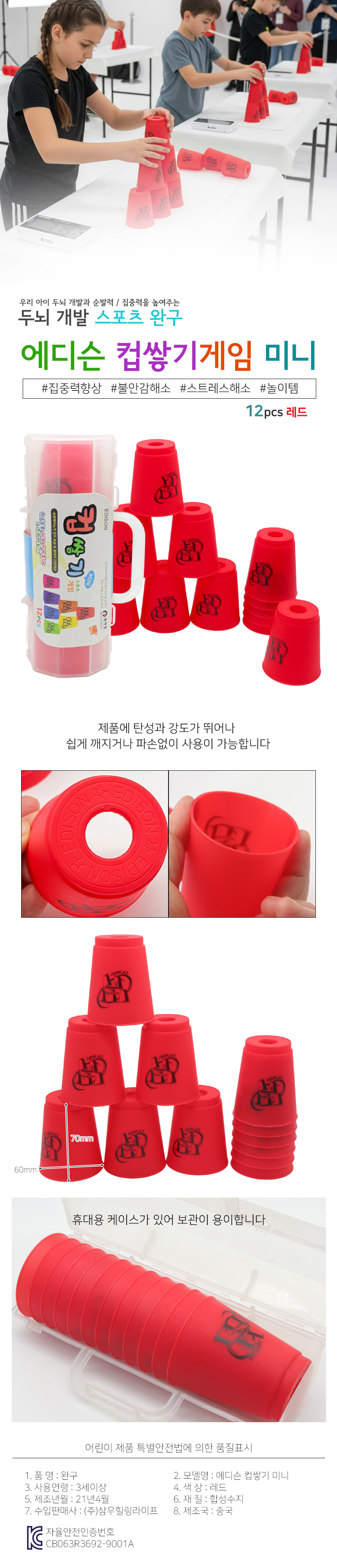 에디슨 컵쌓기 미니 빨강 게임 어린이 교구