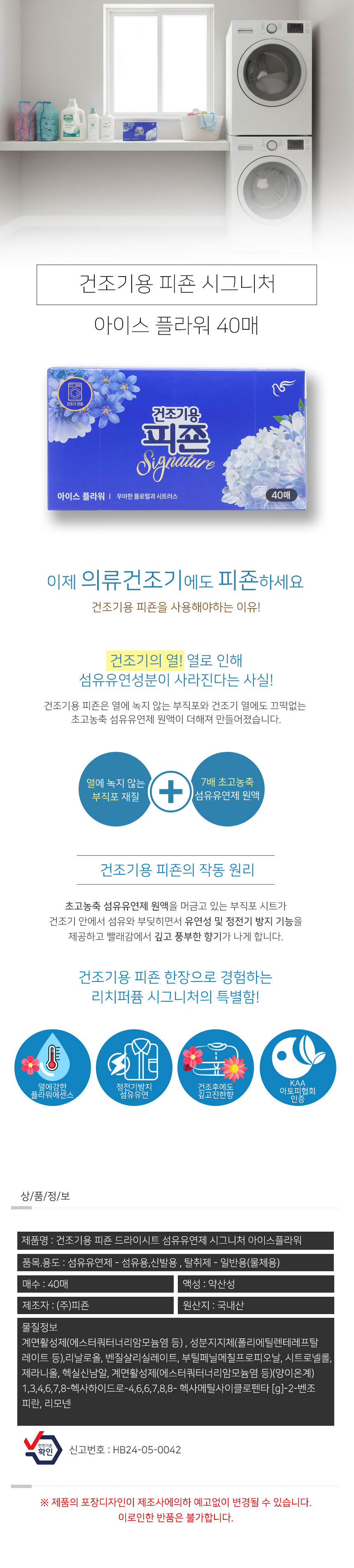 건조기용피죤 종이시트 섬유유연제 아이스플라워 40매