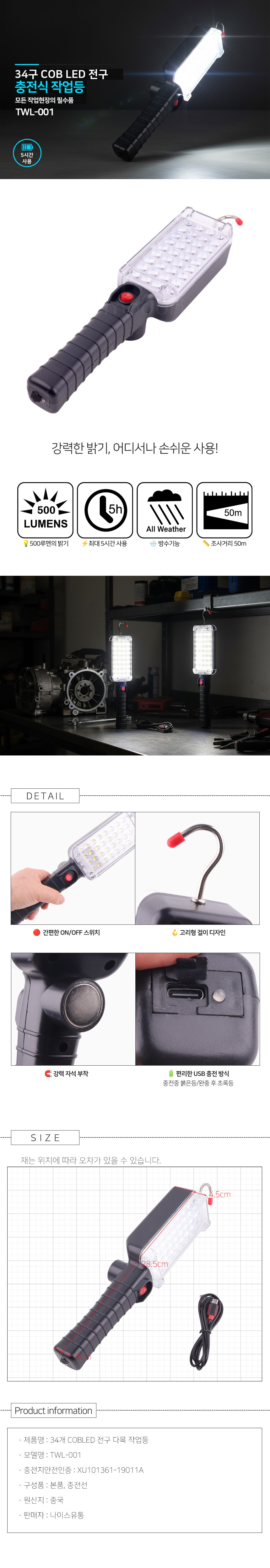 34구 COBLED전구 usb충전 작업등 TWL-001 무선 렌턴