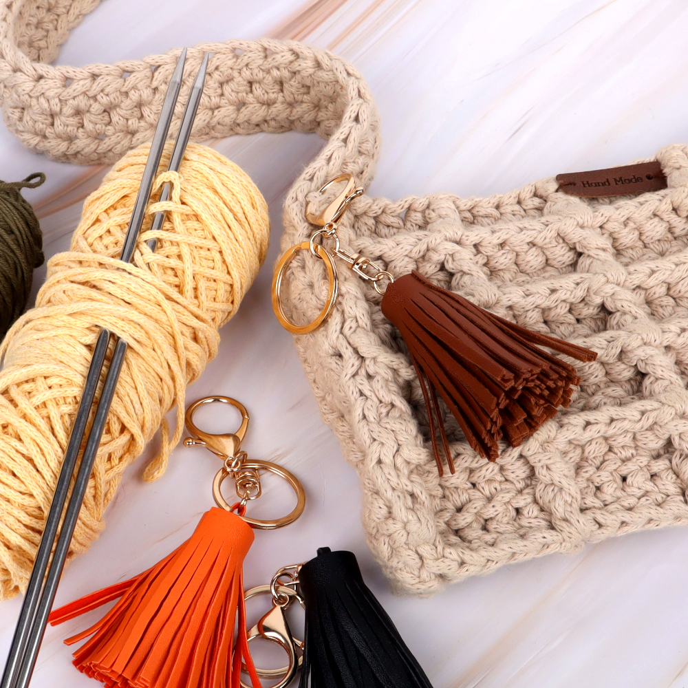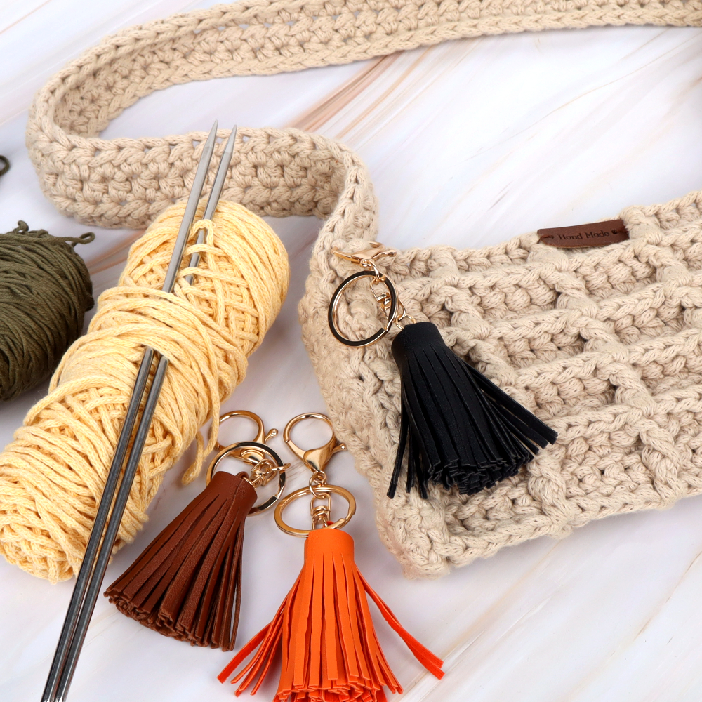 - 백꾸 가죽 가방키링 태슬키링 오렌지
