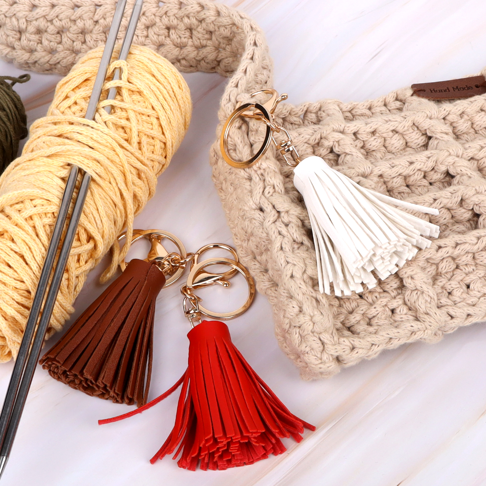 - 백꾸 가죽 가방키링 태슬키링 화이트