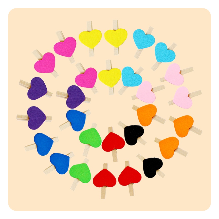- 칼라 클립 걸이 문구 원목 서류 정리 집게 하트 클립