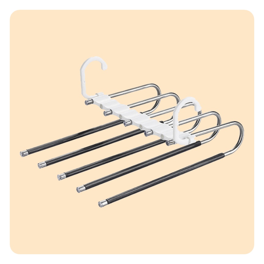 - 논슬립 5단 바지걸이 옷장 정리 공간활용 스텐 걸이 옷수납 바지 정리 스카프 목도리
