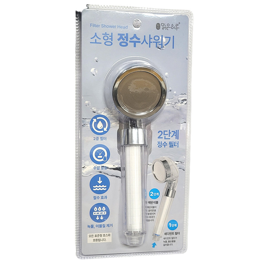 - 2단계 정수필터 녹물 이물질제거 절수효과 샤워기헤드