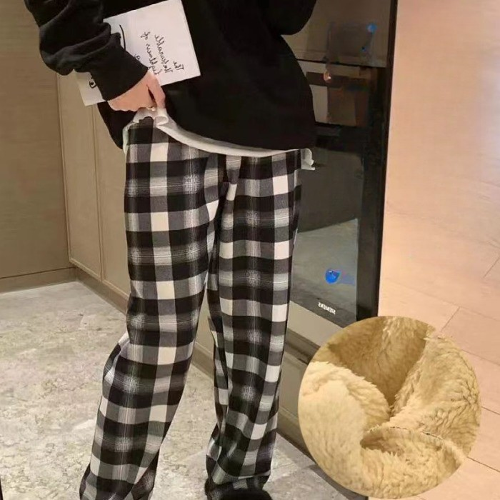 - 여성 체크 통바지 와이드 여름용 캐주얼 홈웨어 팬츠