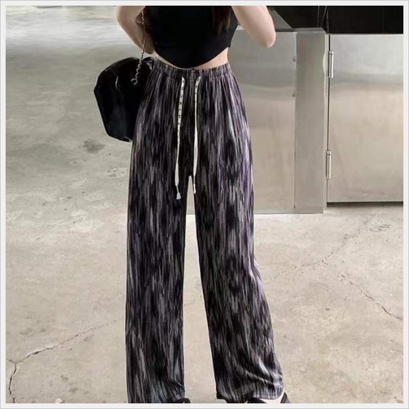- 여성 여름 와이드 팬츠 프린팅 밴딩 바지 홈웨어
