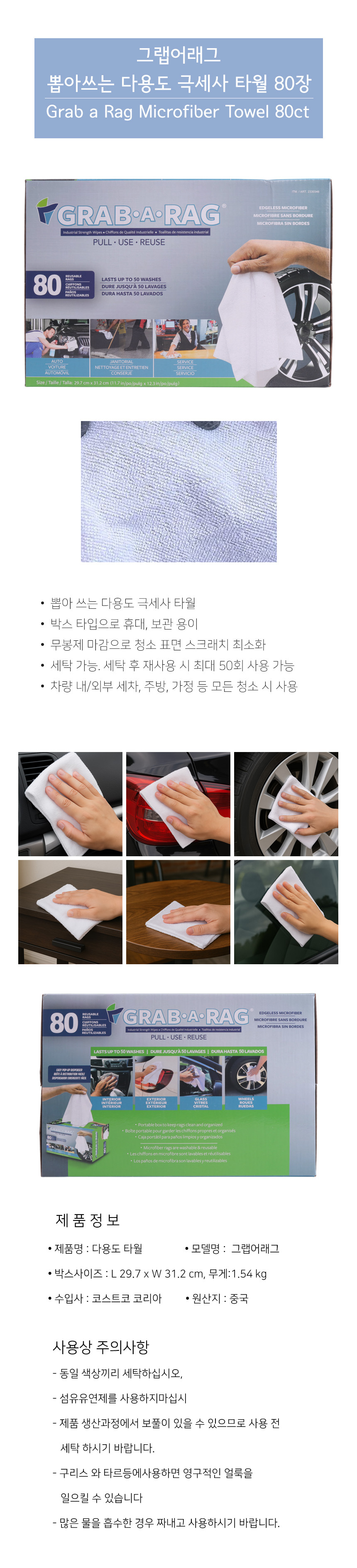 그랩어래드 뽑아쓰는 다용도 극세사 세차타월 80매