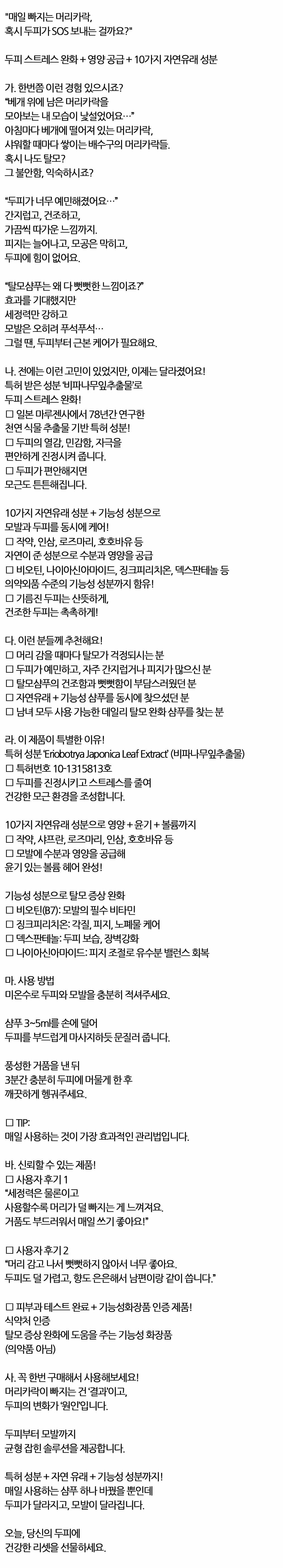 아침마다 베개에 떨어져있는 머리카락 헤어샴푸 500ml