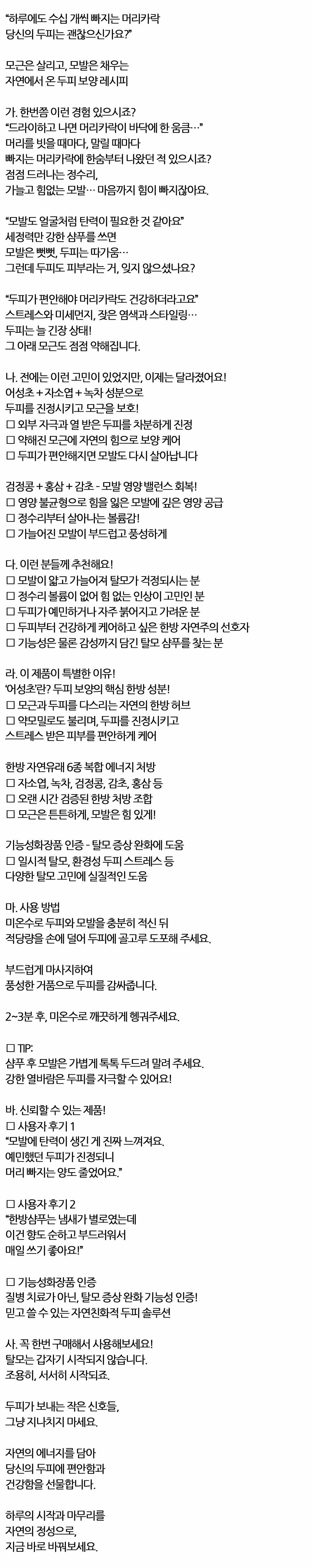 하루에 수십 개씩 빠지는 머리카락 어성초 샴푸 520ml