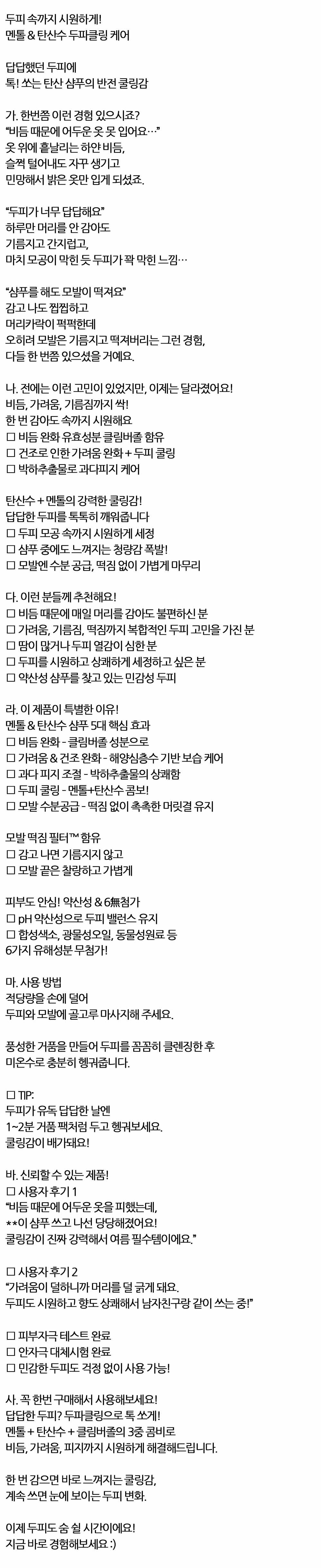 톡쏘는 반전 쿨링감 두피 속까지 시원하게 샴푸 820ml