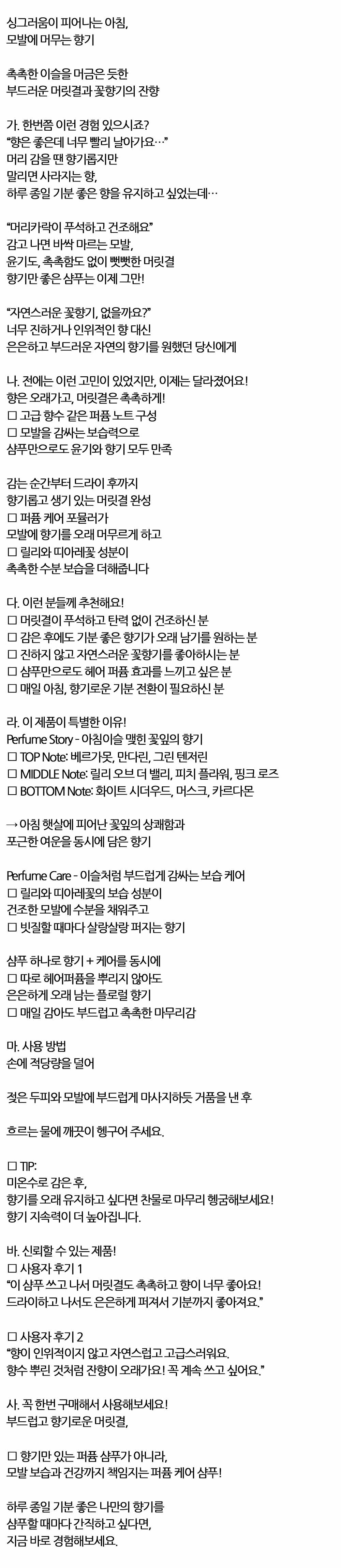 싱그러운 꽃향기 부드러운 보습 어우러진 향기샴푸 1L