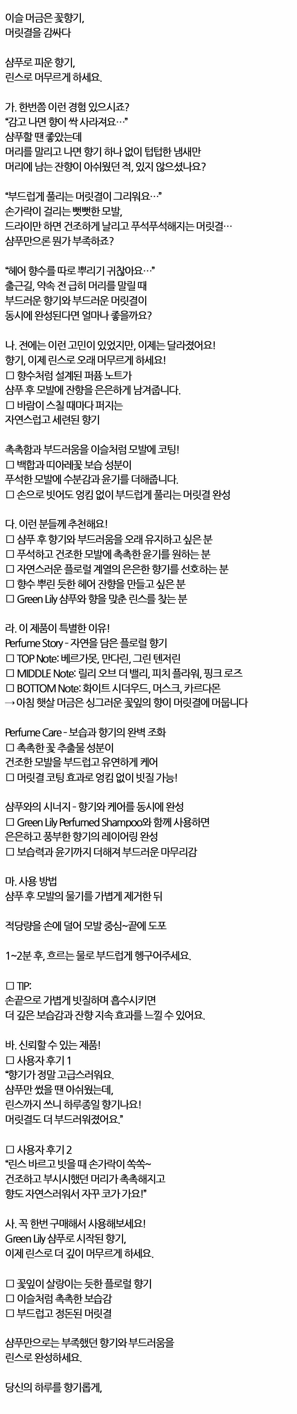 은은한 잔향과 부드러운 머릿결의 완성 향기 린스 1L