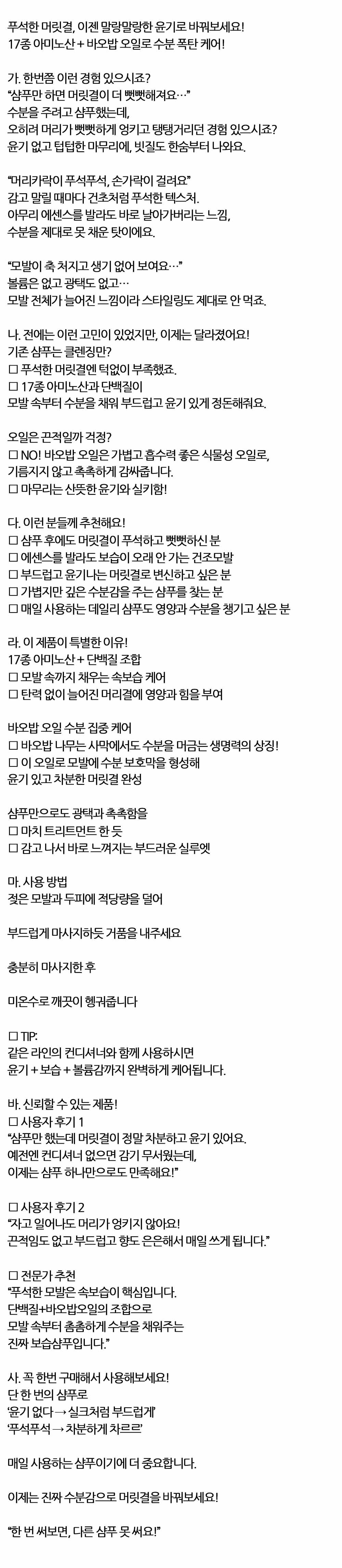 푸석한 머릿결 말랑한 윤기로 바꿔보세요 샴푸 600ml