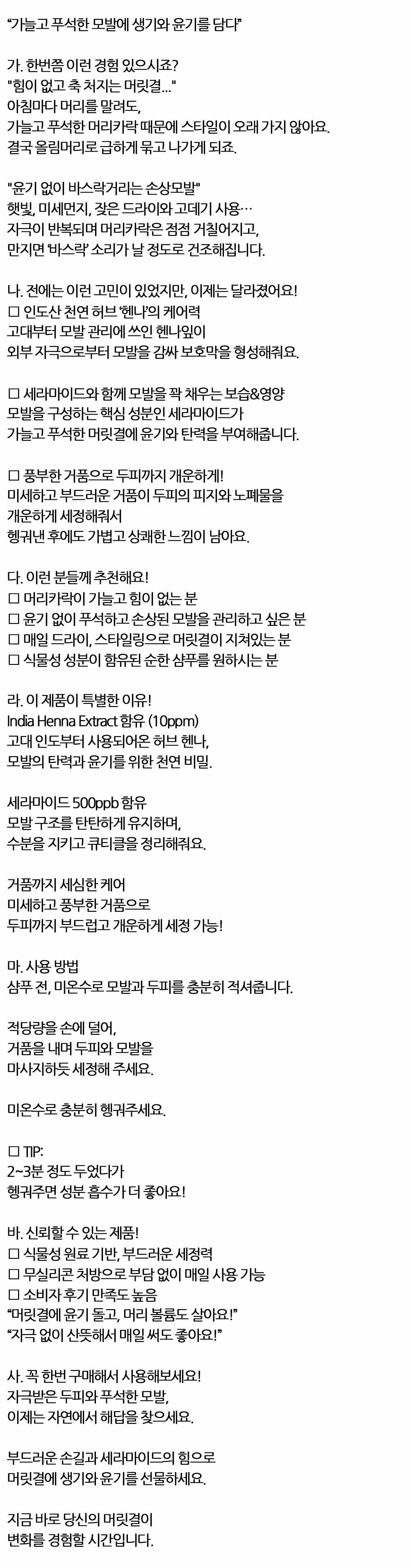 가늘고 푸석한 모발에 생기와 윤기를 담다 샴푸 700ml