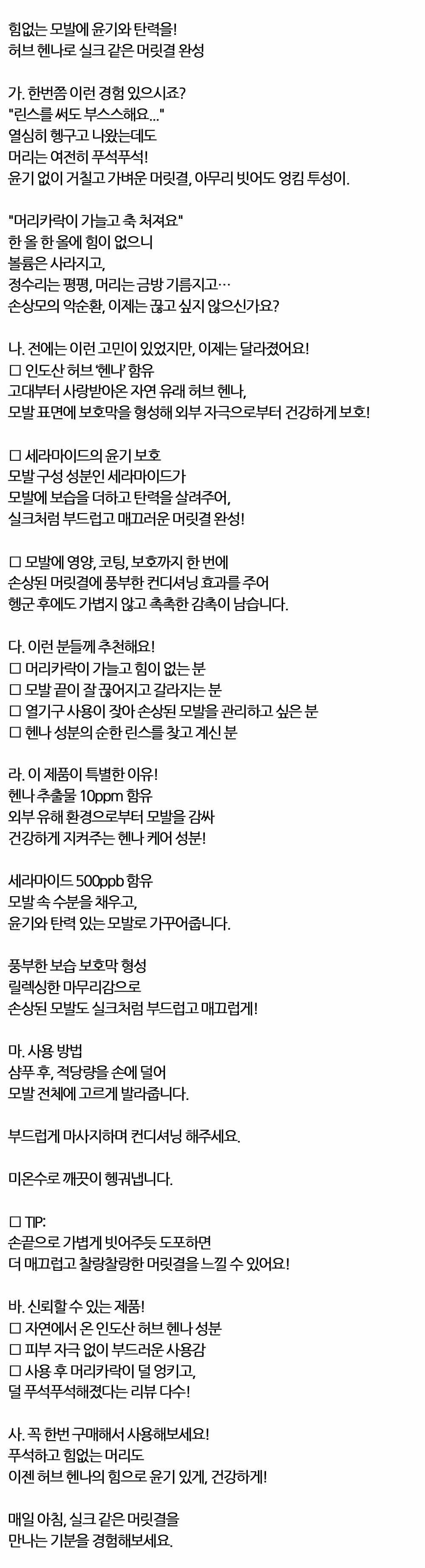 윤기 없이 거칠고 가벼운 머릿결 헨나 헤어린스 700ml