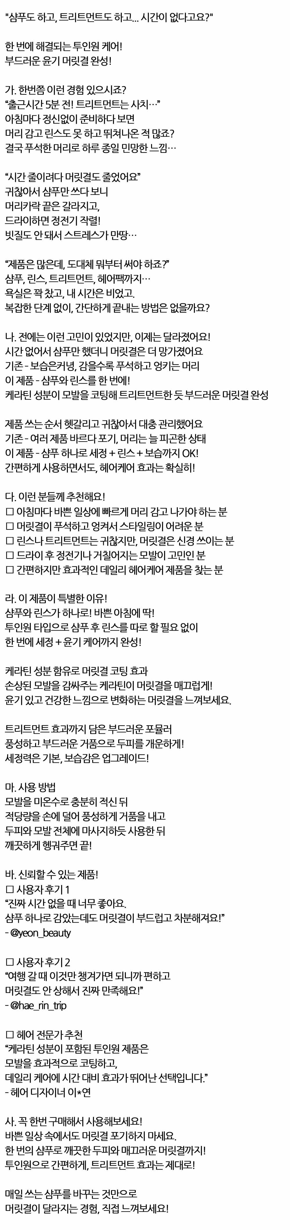 트리트먼트한 듯 부드러운 머릿결 투인원 샴푸 1500ml