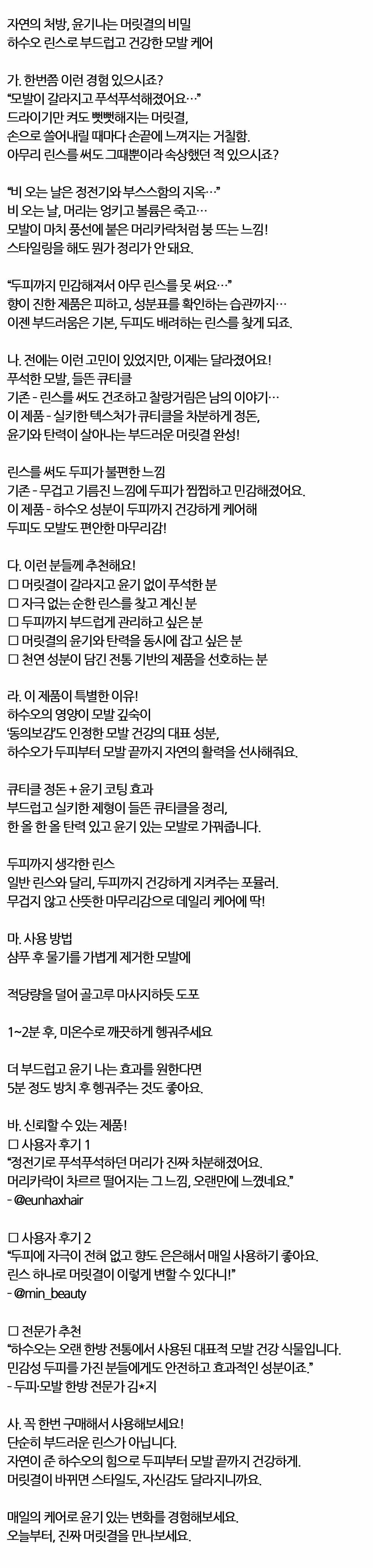 하수오 린스로 부드럽고 건강한 모발케어 린스 1500ml