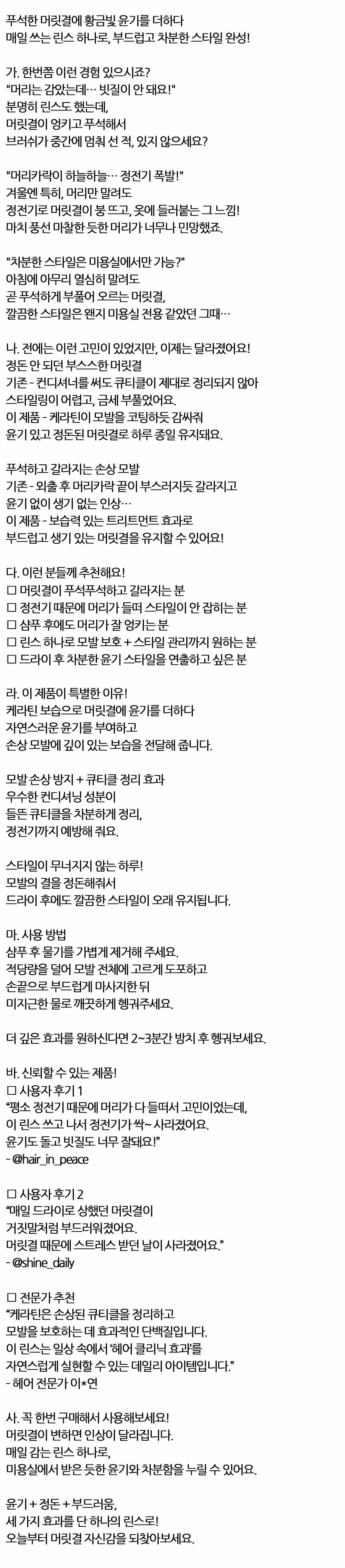 미용실에서 받은 듯한 윤기와 차분함 헤어린스 1500ml