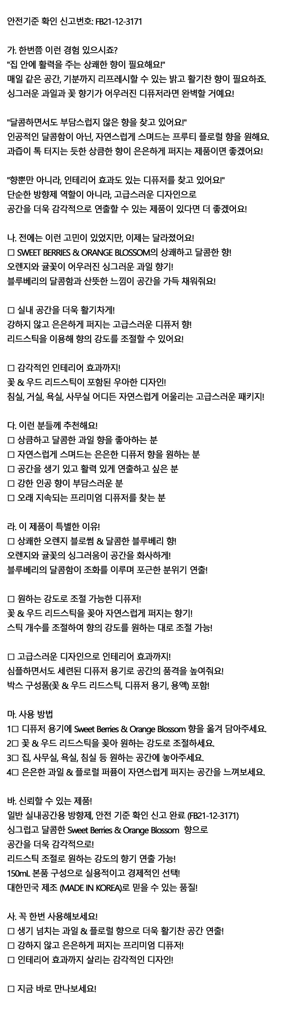 오렌지와 귤꽃 어우러진 싱그러운 과일 디퓨저 150ml