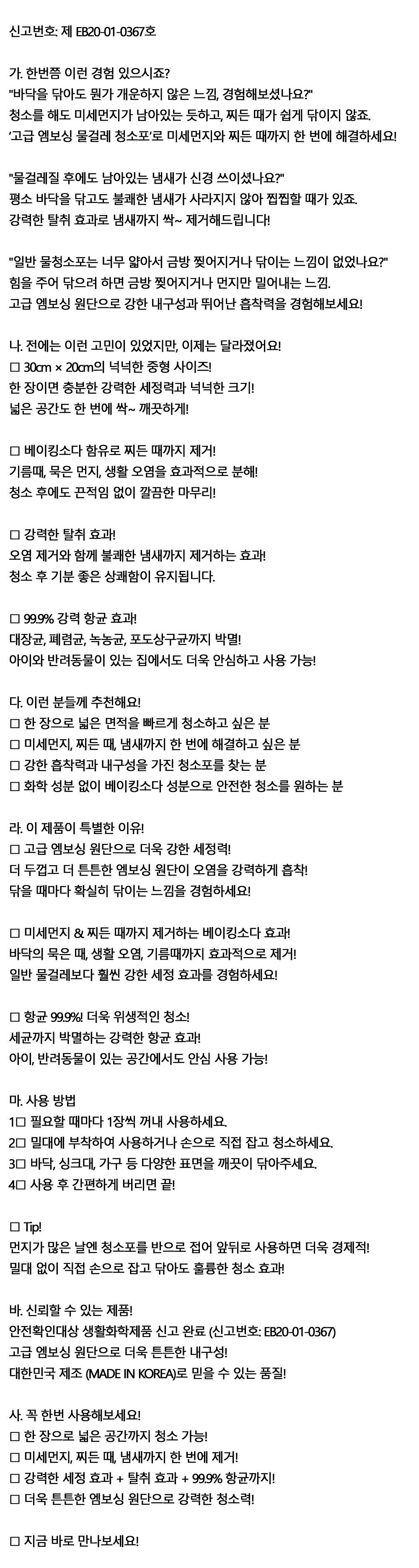 베이킹소다 함유 찌든때제거 고급 물걸레 청소포 25매