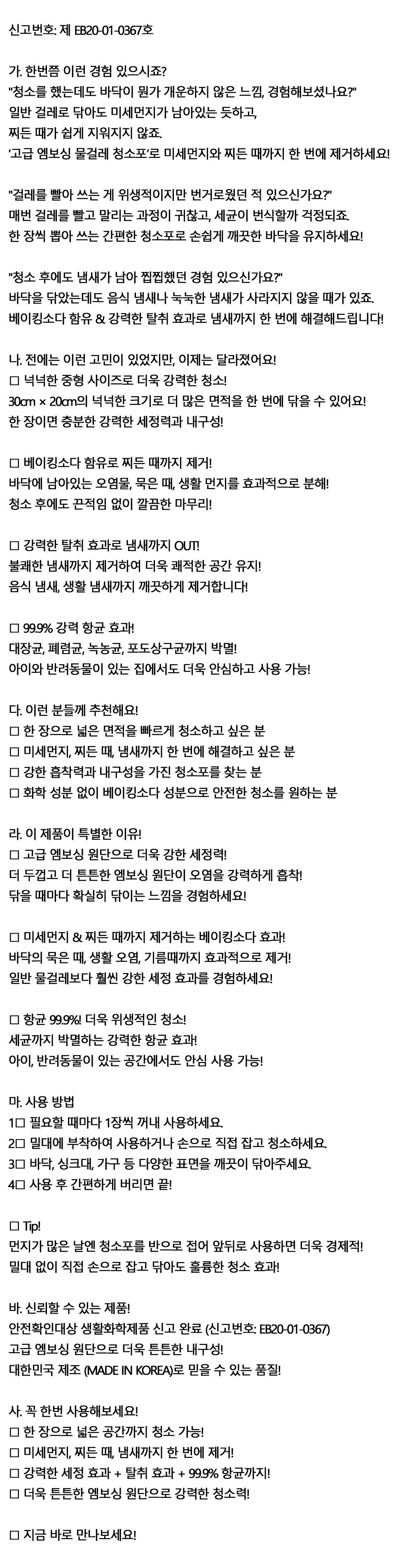 한 장씩 뽑아 쓰는 간편한 실속형 물걸레 청소포 30매
