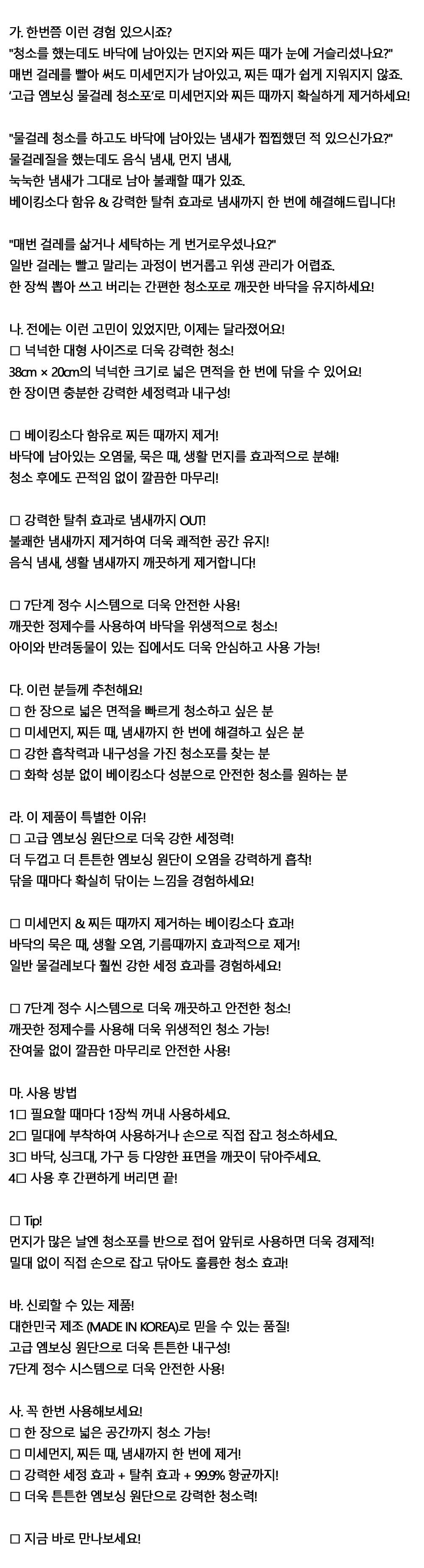 한 장으로 넓은 공간까지 청소 물걸레 청소포 25매