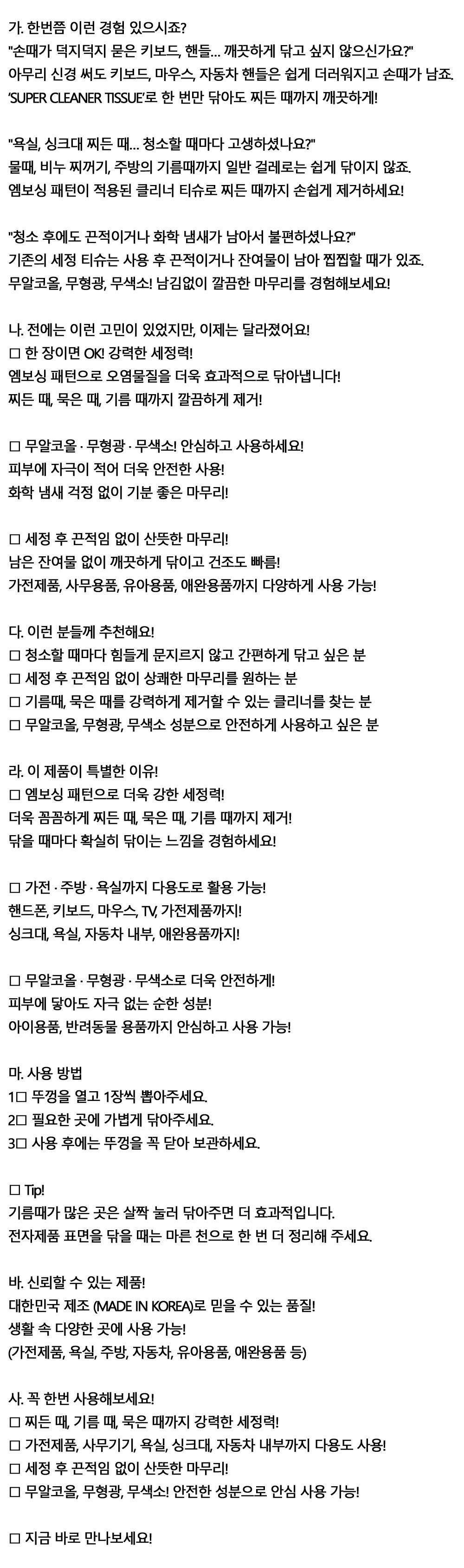 욕실 싱크대 청소할 때마다 고생하셨나요 크리너 60매