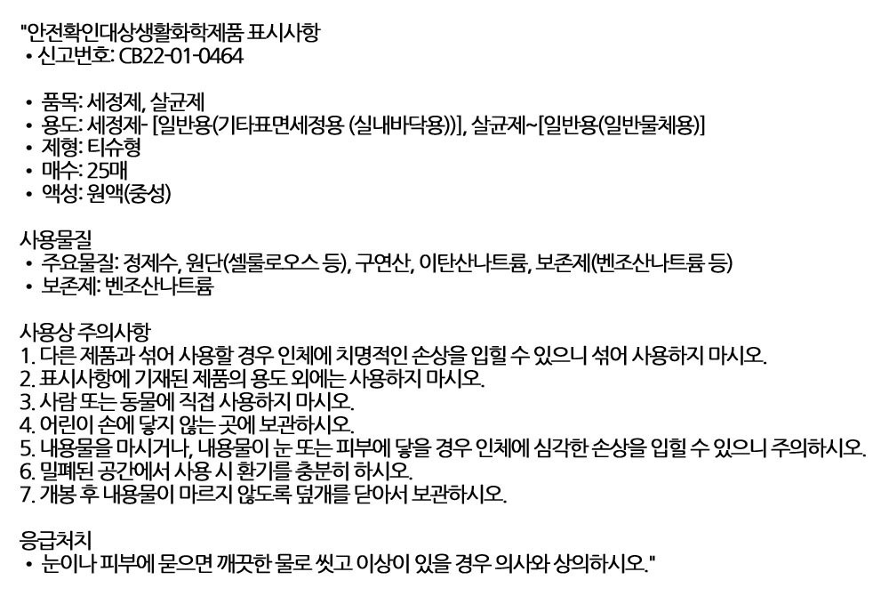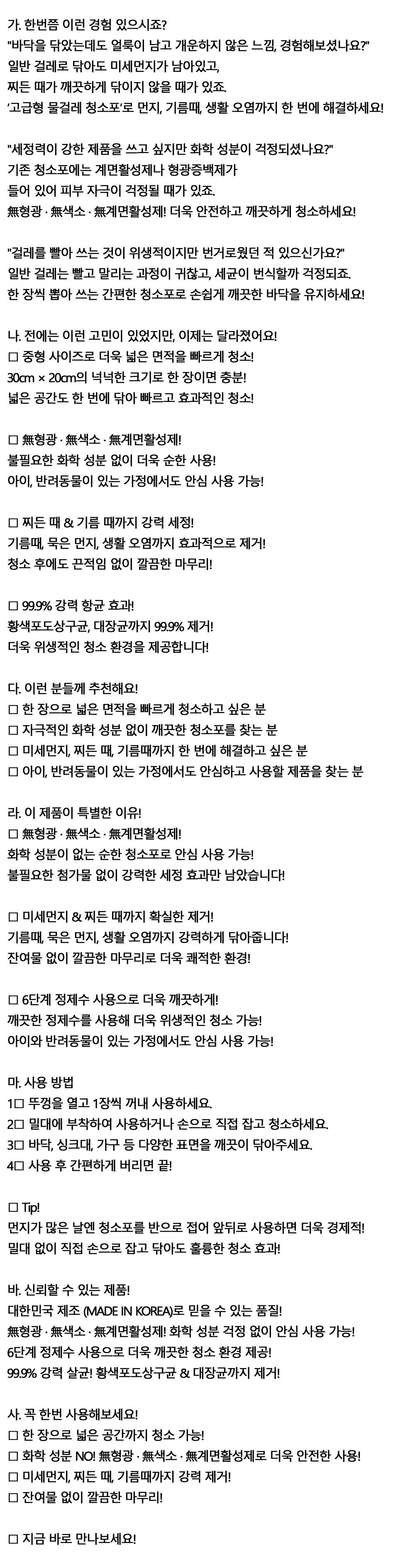 먼지 기름때 한 번에 해결하세요 물걸레 청소포 25매