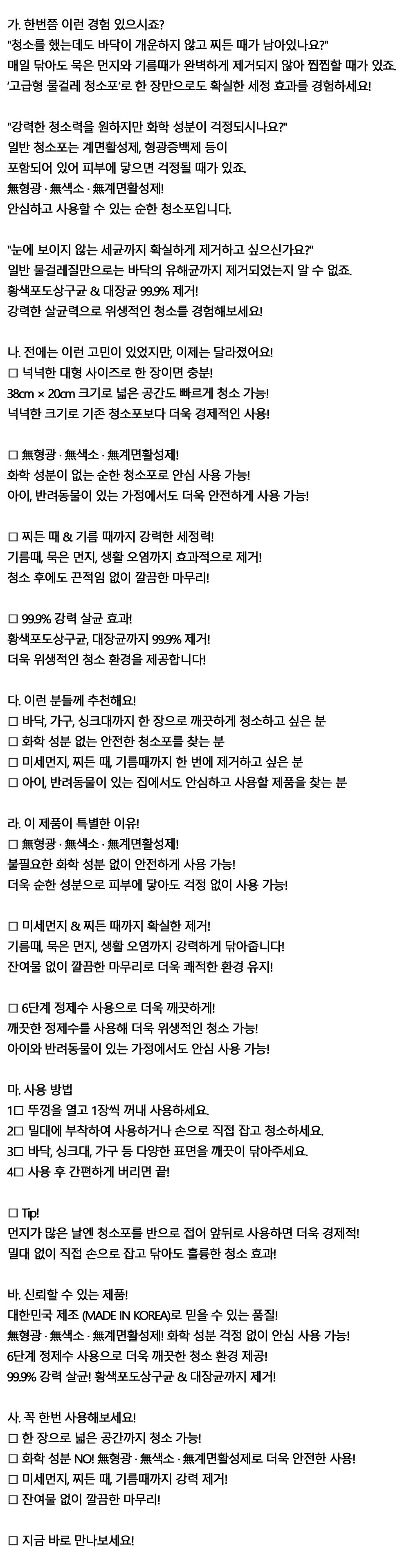 화학 성분이 없는 순한 안심 사용 물걸레 청소포 25매