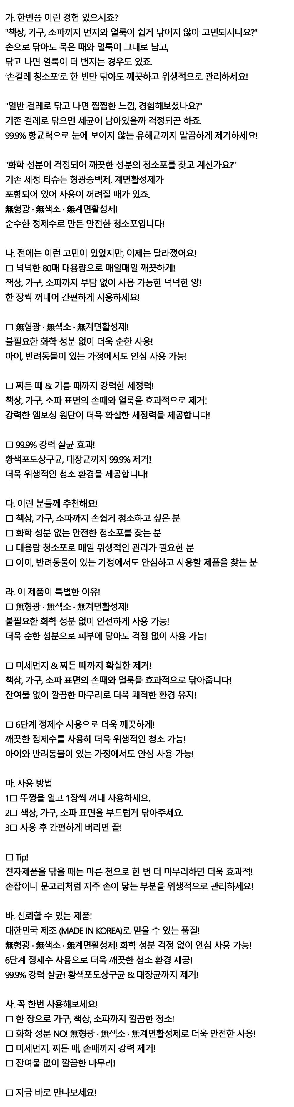 책상가구 소파표면의 손때와 얼룩 손걸레 청소포 80매