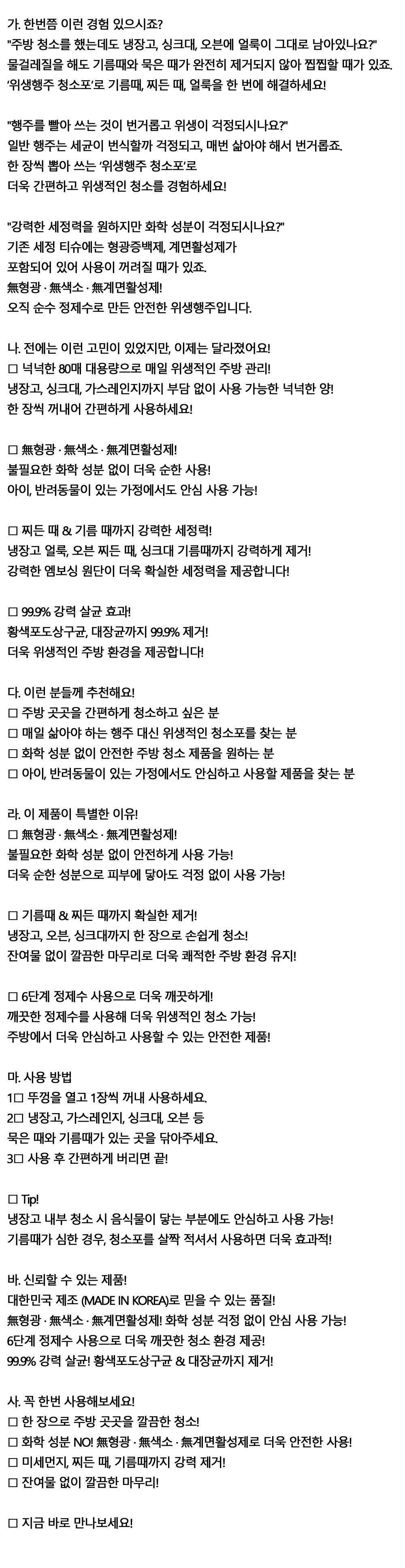 매일 삶아야 하는 행주대신 위생적 티슈형 행주 80매