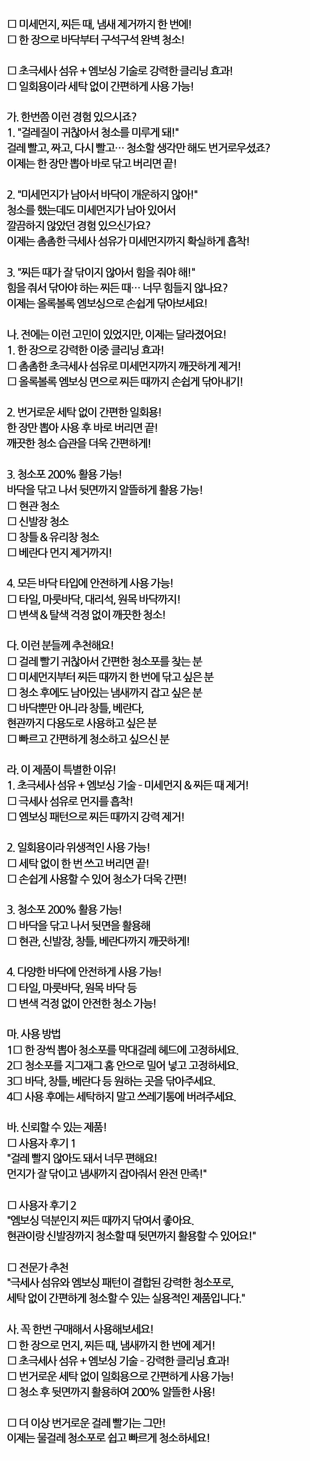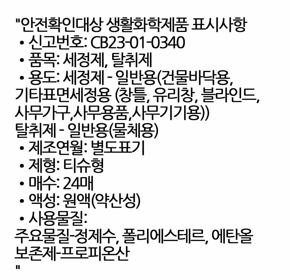 한 장만 뽑아 바로 닦고 버리면 끝 물걸레청소포 24매